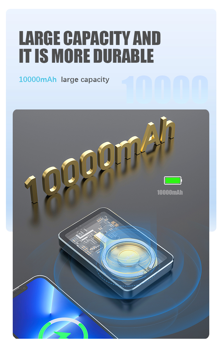 3. Бесправадныя банкі харчавання: гэтыя банкі харчавання выкарыстоўваюць тэхналогію бесправадной зарадкі для зарадкі прылад без неабходнасці выкарыстання кабеляў.Вы проста пакладзеце прыладу на павербанк, і яна пачне зараджацца.Гэтыя банкі харчавання ідэальна падыходзяць для тых, хто хоча беспраблемнае рашэнне для зарадкі.
