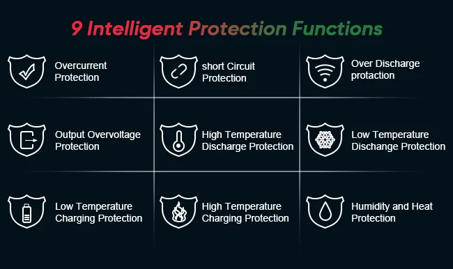 Sellel on sisseehitatud ülelaadimis- ja pingekaitse, mis aitab vältida ülekuumenemist, lühiseid ja muid võimalikke ohte.