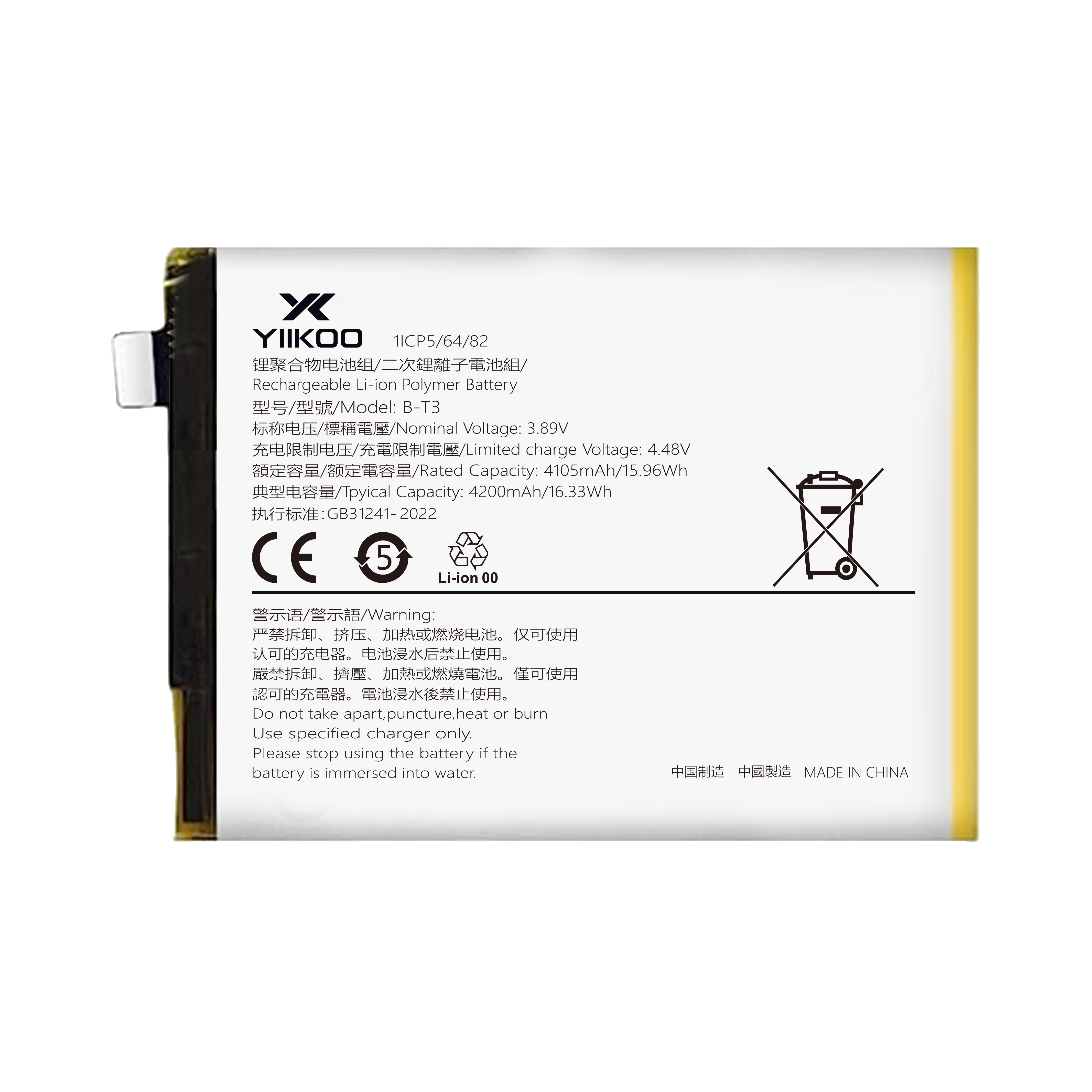 Certificações: UL, CE, ROHS, IEC62133, PSE, TIS, MSDS, UN38.3